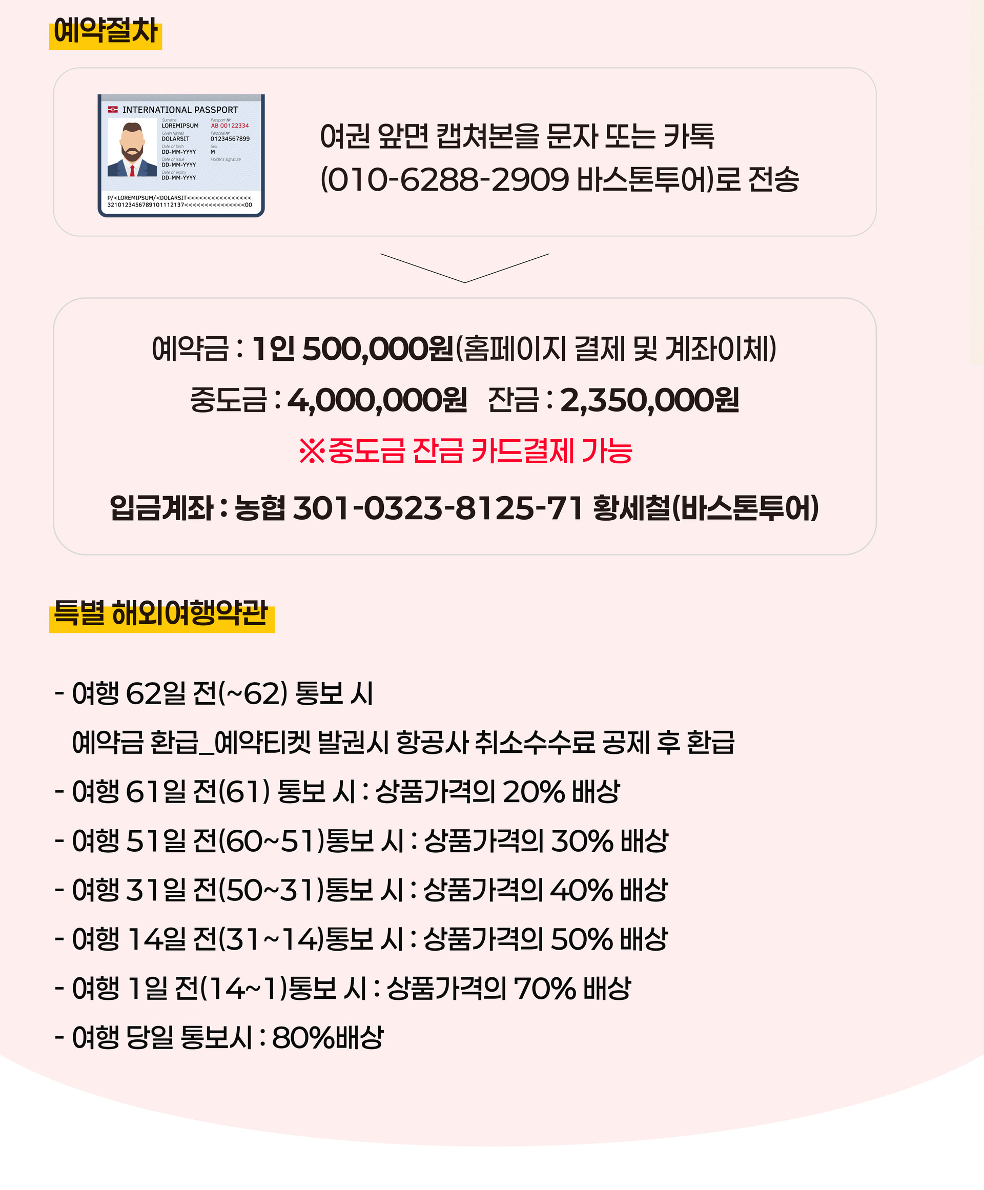 ※ 은행 및 예금주 : 농협 / 황세철(바스톤투어)