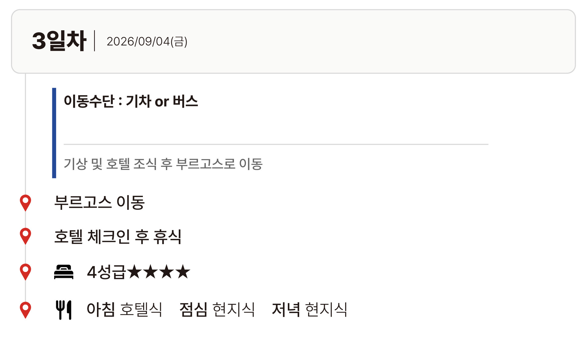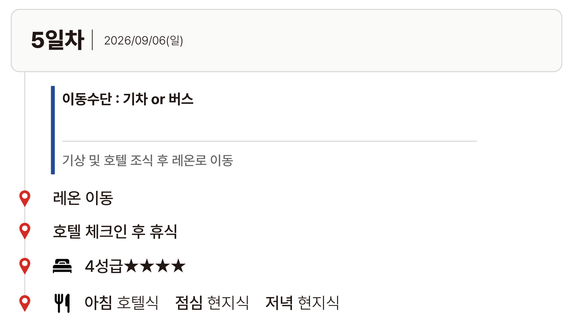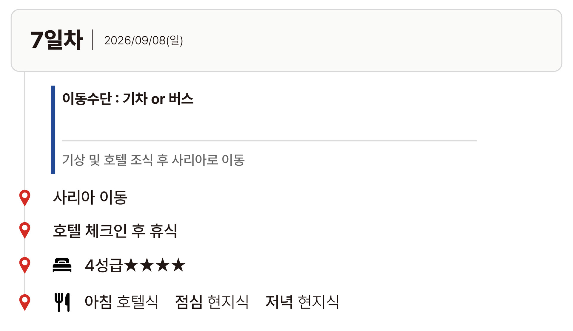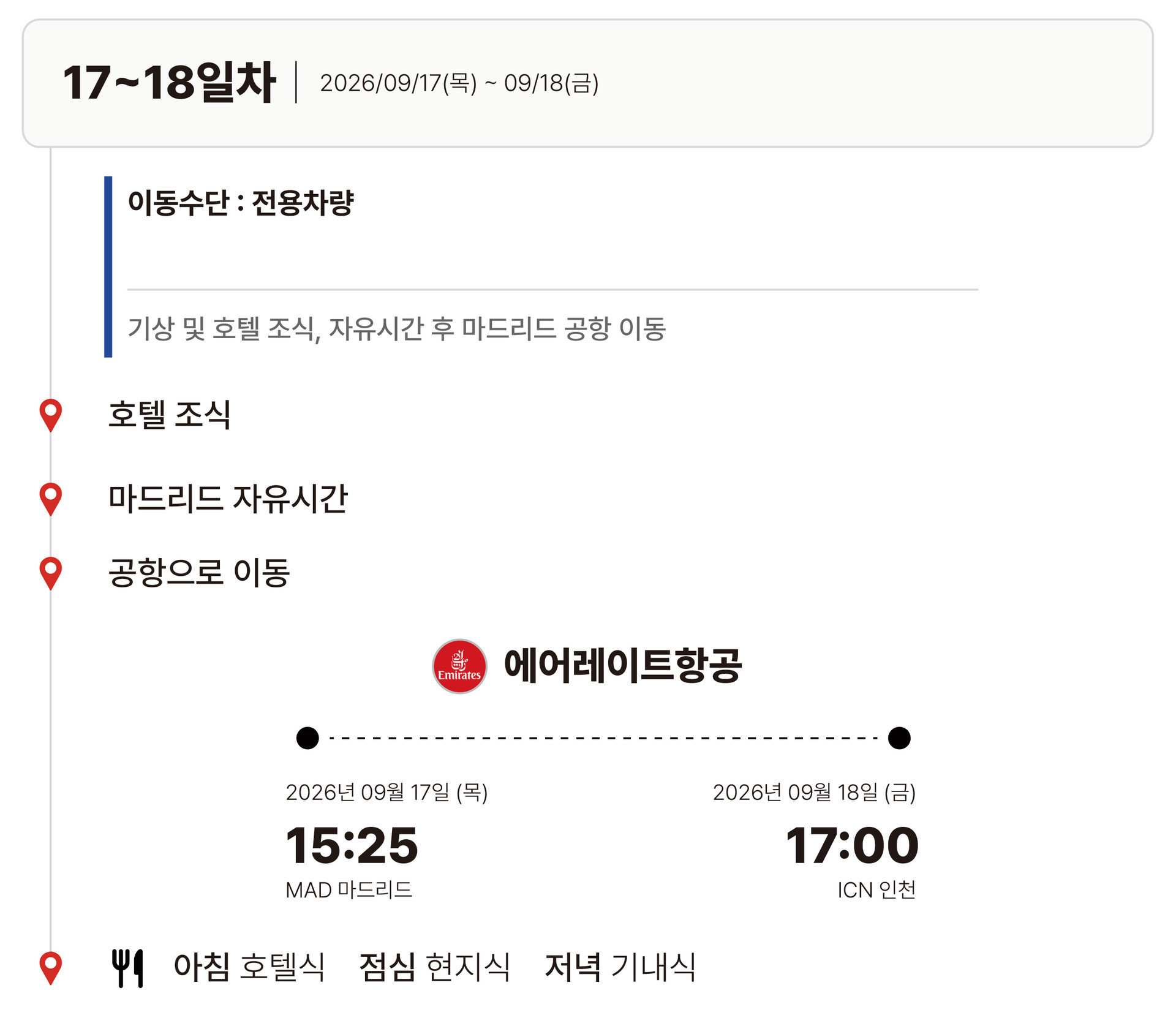 해당 일정은 현지 상황에따라 변경 될 수 있습니다.