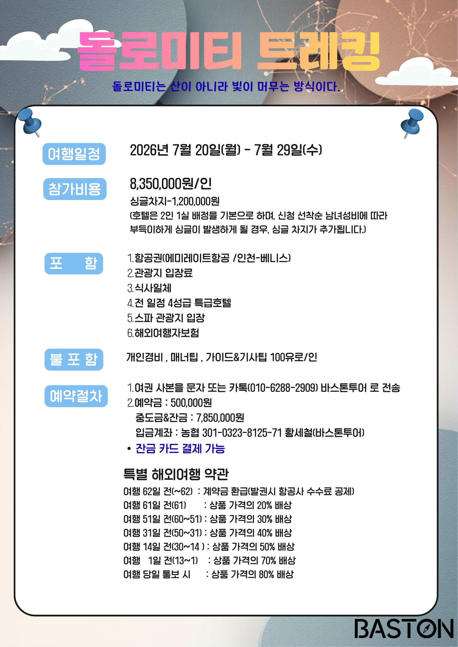 | 💬 여행상담 010-6288-2909 | 🗓️ 입금계좌 : 농협 301-0323-8125-71 황세철(바스톤투어) |