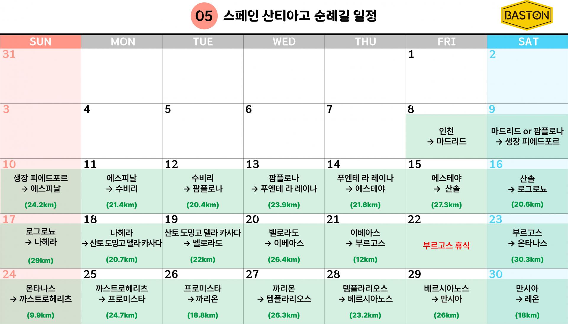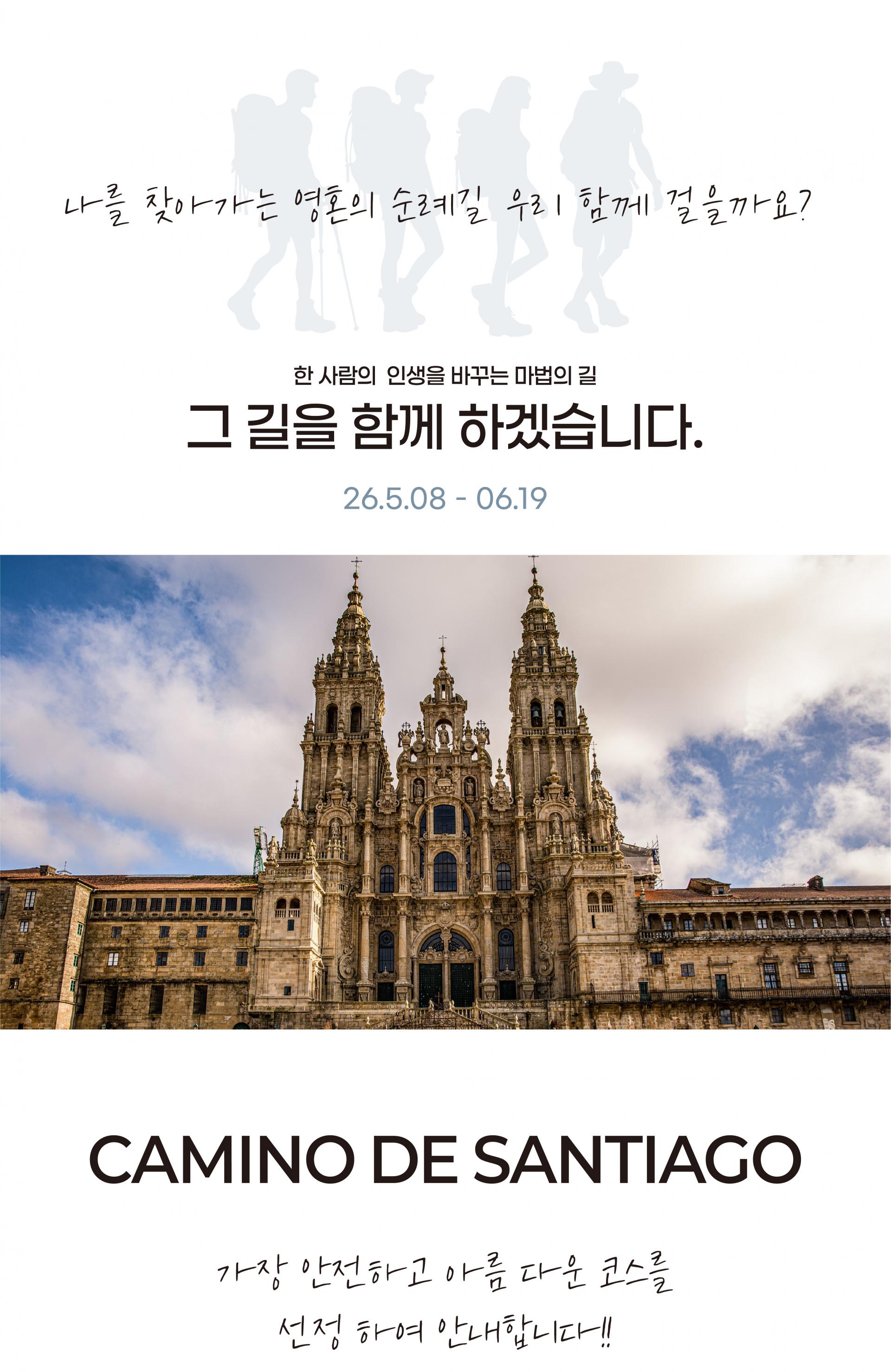 | 포함/불포함 | ▶ 포함 1. 교통 인천-마드리드 항공권 / 산티아고-마드리드 항공 or 기차 / 마드리드-생장 리무진 2. 호텔 10박 서비스(마드리드, 부르고스, 레온, 산티아고,산토도밍고,까리온 데 로스 콘데스) 3. 피니스떼레, 묵시아 관광일체 4. 수화물 배송 서비스 일체 5. 순례자여권 발급 제공 6. 해외여행자보험 ▶ 불포함 1. 호텔 and 호스텔 숙박 (31박) 및 식사 개별 부담 / 개인 경비 2. 호텔 10박 서비스 중 1인 사용 시 싱글차지(1,100,000원) 발생 |