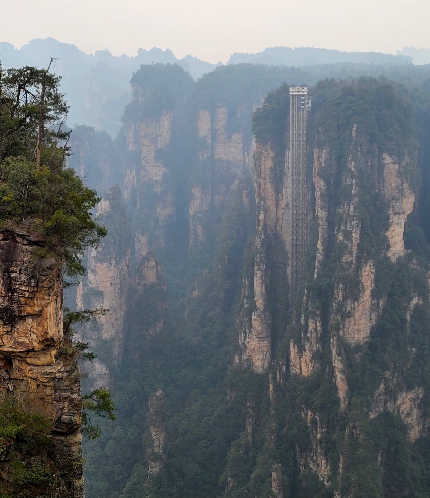 원가계에서는 미혼대, 후화원, 천하제일교를 둘러보고, 세계 최고의 야외 엘리베이터인