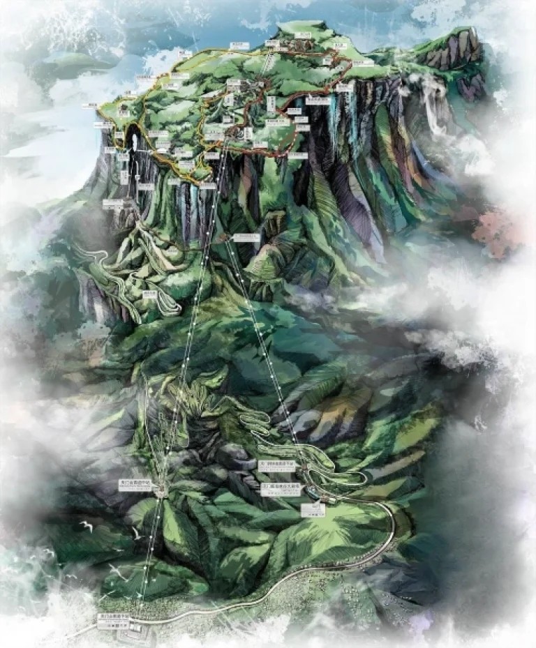 장가계의 대표적인 관광지로 환상적인 풍경과 독특한 지형으로 유명한 코스이며, 케이블카로 산에 오른 후
