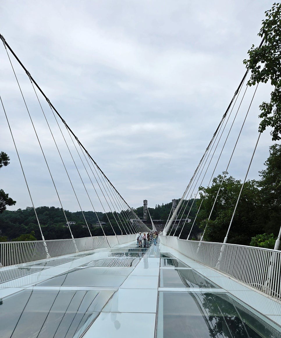 세계 최장의 케이블카(7,455m, 30분)를 타고 장가계 시내를 조망하며 천문산에 오른 후에 절벽에 유리길을 붙여 만든 유리잔도,