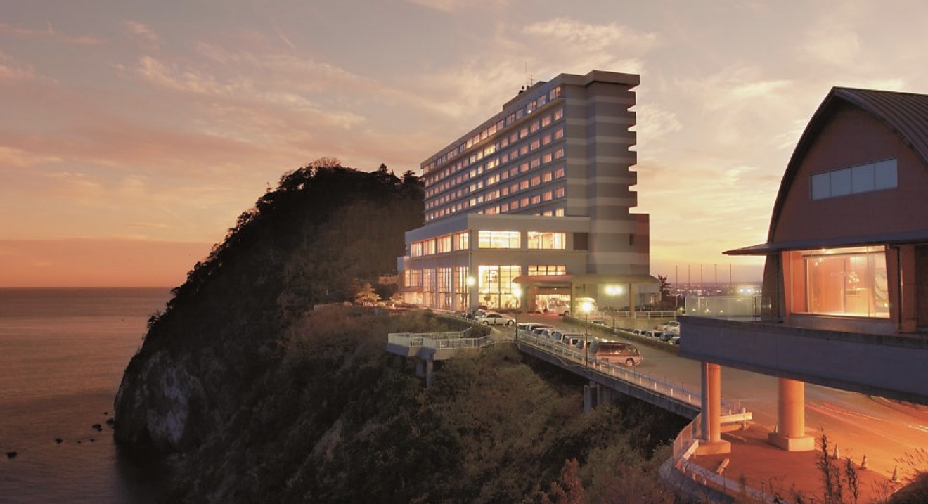 바다 위 절벽에 지어진 후지산 전망 온천 호텔