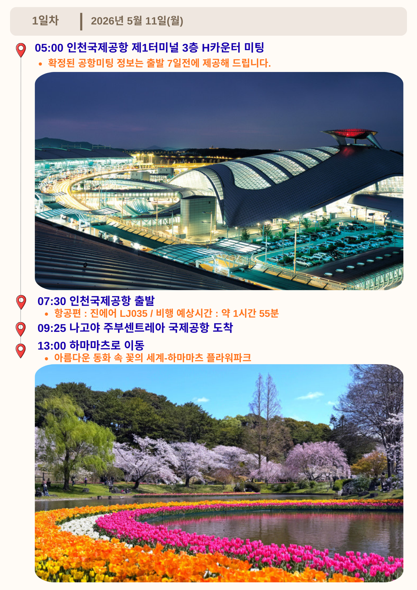 | 여행일정 | 26년 5월 11일(월)~5월 14일(목) |